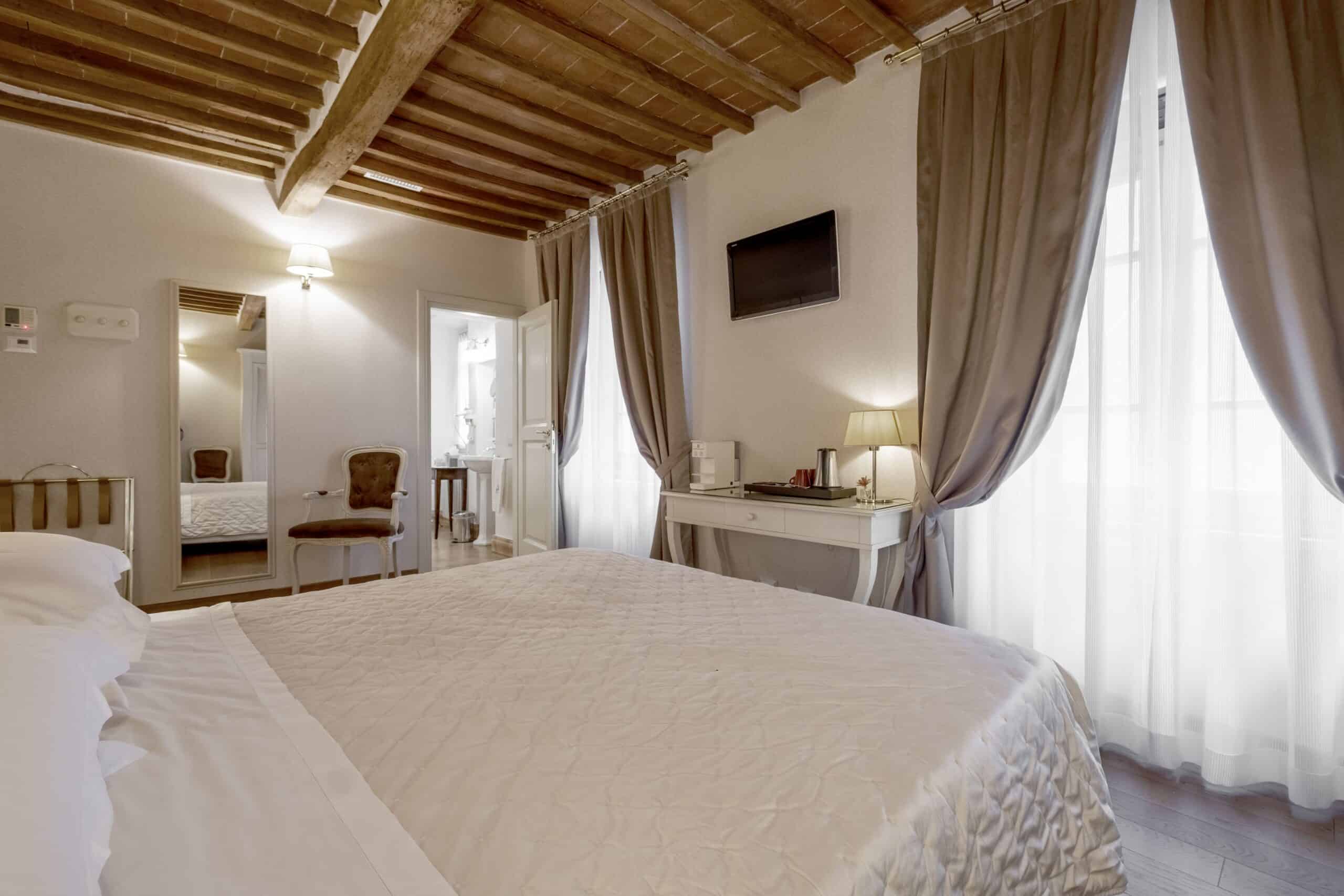 Ogni spazio è curato con arredi caldi e dettagli che raccontano la nostra idea di ospitalità toscana.